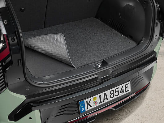 Ciesz się podwójną ochroną dzięki dwóm odwracalnym powierzchniom: wysokiej jakości welurowi ECONYL® po jednej stronie i wytrzymałemu, odpornemu na zabrudzenia wykończeniu po drugiej stronie – aby dopasować się do całej gamy różnych środków transportu, jakie niesie ze sobą życie. Z przyciskami do mocowania klapy zderzaka.