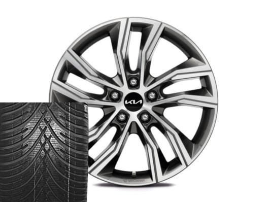 Komplet kół zimowych skomponowany z oryginalnych akcesoriów Kia - oryginalnych felg i oryginalnych czujników TPMS.